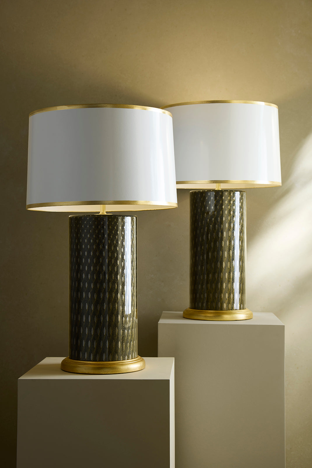 Festoni’s ceramic lamps are available in a wide range of forms, colors, and finishes. Festoni’s glazes are built through close collaboration with artisans, resulting in a depth of saturation, variation, and richness that sets the work apart. Each piece includes a built in dimmer, with in-stock availability and customizable bases and shades. They are designed to be easy to work with and easy to come back to.