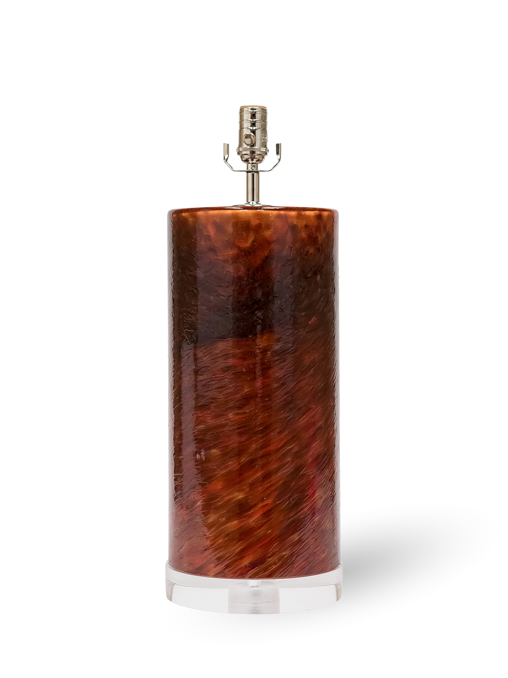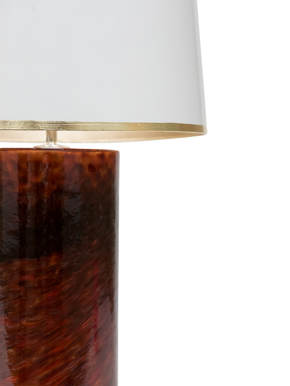 Bold and full of depth, Brasile draws its inspiration from the richness of earth and espresso. This striking table lamp features an intense dark brown glass base, swirled with layered texture that gives the surface a sense of movement and warmth.