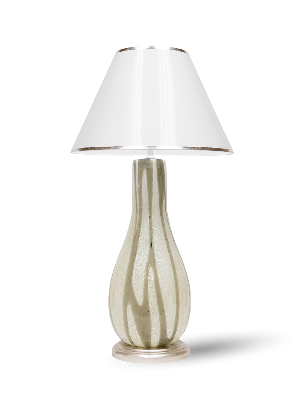 This full-flare paper lampshade makes a bold yet elegant statement with its dramatic silhouette and soft light diffusion. Its wide, flowing form complements the sculptural presence of FESTONI’s Venetian glass or ceramic bases, creating a harmonious balance of light, shape, and artisanal sophistication.